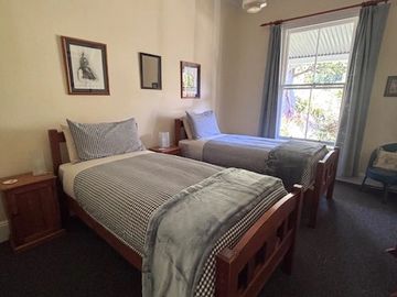 A spacious private twin room with 2 comfortable single beds.