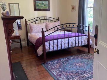 Spacious private double room with authentic features like the fire place.